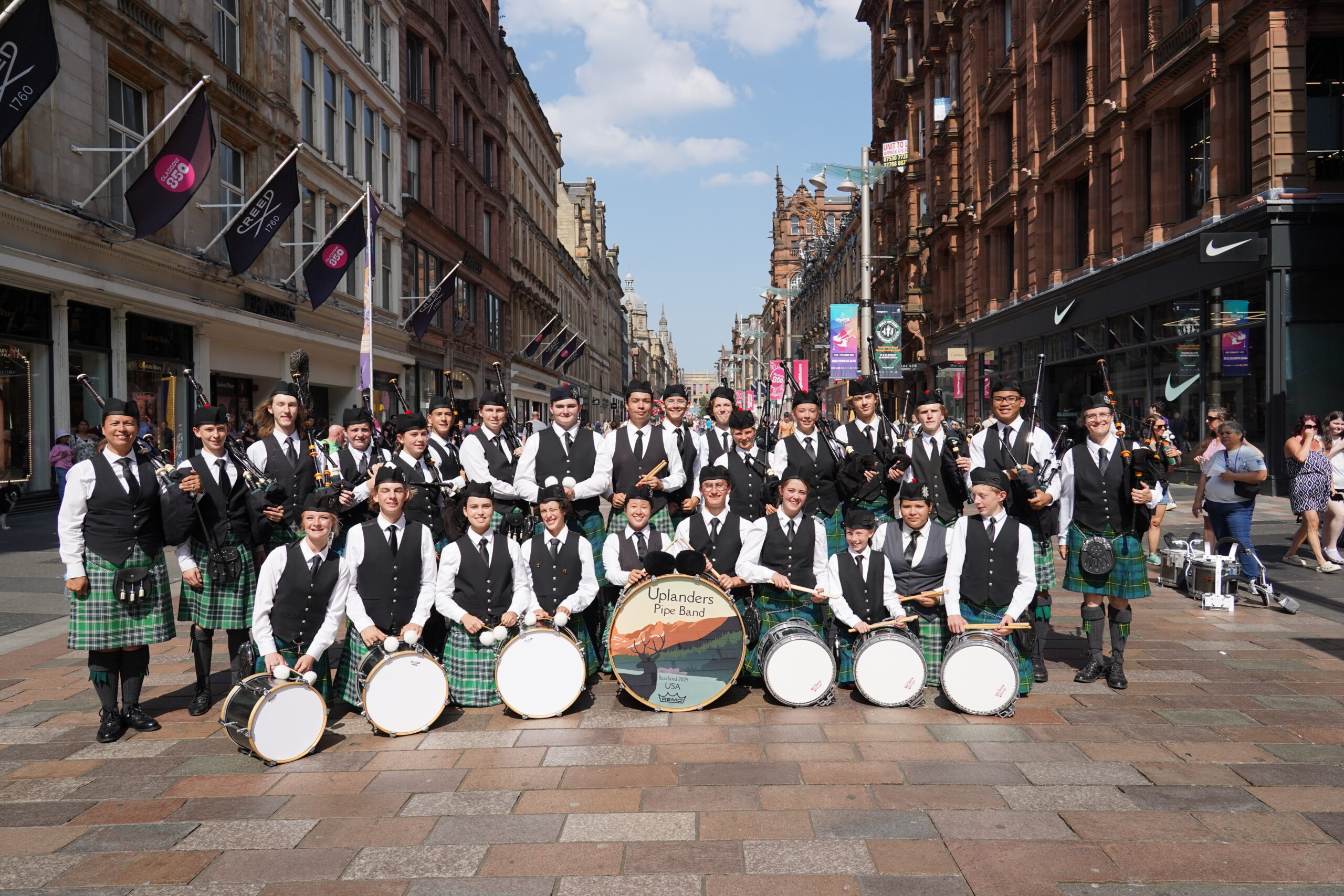 Lander Pipe Band (WY) joined ranks with band members from Upland High School Pipe Band (CA), Glendora High School Pipe Band (CA) and the Salt Lake Scots Pipe Band (UT) to become one band representing the Western US at the 2025 World Youth Pipe Band Championships. The combined band was called “The Uplanders”. We are so appreciative of this once in a lifetime collaboration!